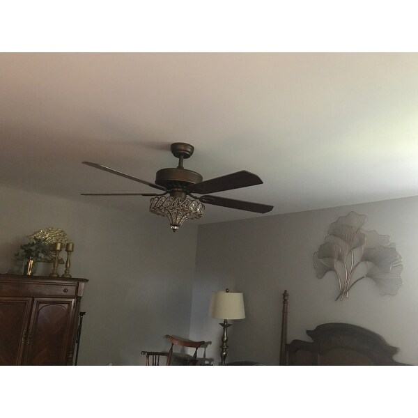 Top Product Reviews For Pilette 5 Blade Antique Speckled Bronze Lighted Ceiling Fan W Crystal Shade Optional Remote Control Incl 2 Color Choice Blades 22966552 Overstock
