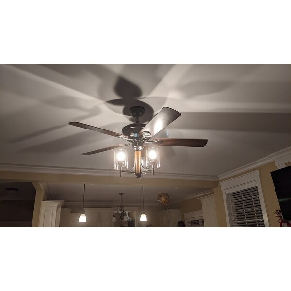 Saranac 5 Blade 52 Inch Forged Black Lighted Ceiling Fans W Clear Pillar Glass Lamps Remote Controlled 2 Color Option Blades Overstock 22538387