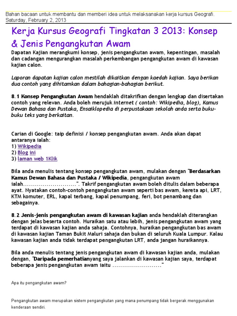 contoh kerja kursus geografi tingkatan 2 sistem pengangkutan